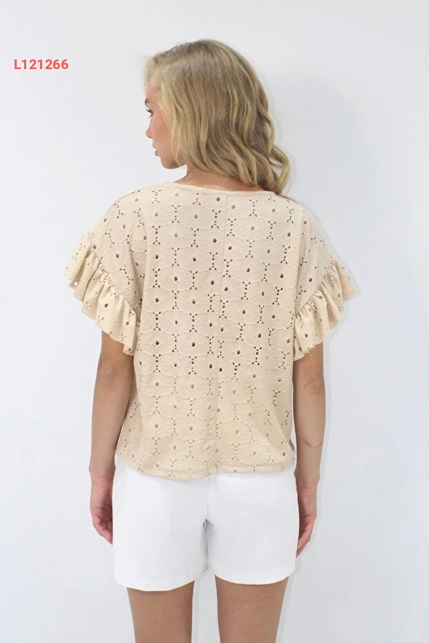 استمتعي بالأناقة والراحة مع بلوزة "Trend Alaçatı" بتصميمها الجذاب وأكمامها المرفرفة الأنثوية. مصنوعة من قماش ناعم بلون البيج، تأتي هذه البلوزة بتفاصيل مخرمة تعزز من جمالك وتضفي لمسة عصرية على إطلالتك اليومية. تناسب جميع المناسبات وتضفي لمسة من التألق على أسلوبك.