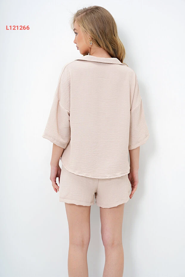 استمتع بأناقة الصيف مع مجموعة Trend Alaçatı Stili! تتضمن هذه المجموعة البلوزة ذات ياقة البول، المصنوعة من قماش الأيروبين الخفيف، والشورت المتناسق الذي يوفر لك الراحة والحرية في الحركة. بتصميمها العصري ولون البيج الأنيق، ستحصلين على إطلالة رائعة تناسب كل المناسبات.