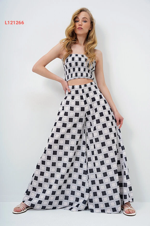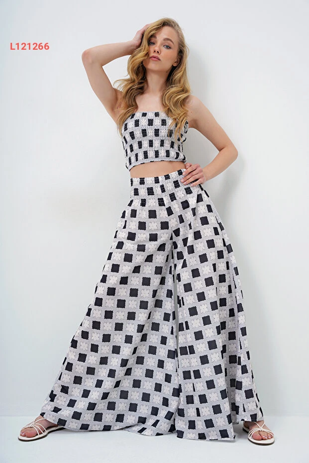 اكتشفي الأناقة العصرية مع مجموعة Trend Alaçatı، التي تشمل بنطال واسع بخصر مريح وقميص Crop مزود بتفاصيل جذابة. بفضل تصميمها الفريد ولونها الأسود الأنيق، ستمنحك هذه الطقم الإطلالة المثالية لمناسباتك اليومية أو الخاصة، مما يجعلك تتألقين بكل ثقة.