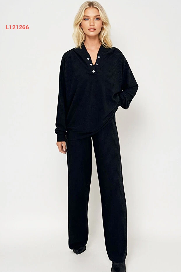 سويت شيرت وبنطال أسود مع قبعة بأسلوب ألاشاتي للنساء - مجموعة مريحة لوك عصري