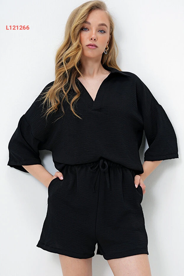 استمتع بالأناقة العصرية مع مجموعة Trend Alaçatı Stili، التي تتضمن بلوزة بأكمام قصيرة بياقة بولو وشورت بأسلوب مريح. مصنوعة من خامات عالية الجودة، تجمع هذه المجموعة بين الراحة والمظهر الأنيق، مما يجعلها الخيار المثالي لكل المناسبات. ارتديها لتضعي لمسة من السحر على إطلالتك اليومية!
