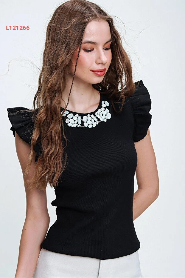 إضفِ لمسة من الأناقة العصرية على إطلالتك مع بُلوزة "Trend Alaçatı" باللون الأسود، التي تتميز بتفاصيل معدنية جاذبة وأكمام رافلز أنثوية. مصنوعة من قماش الكاشكور، هذه البُلوزة تضمن لكِ راحة مثالية مع إضافة لمسة من الفخامة، ما يجعلها الخيار المثالي لأي مناسبة.