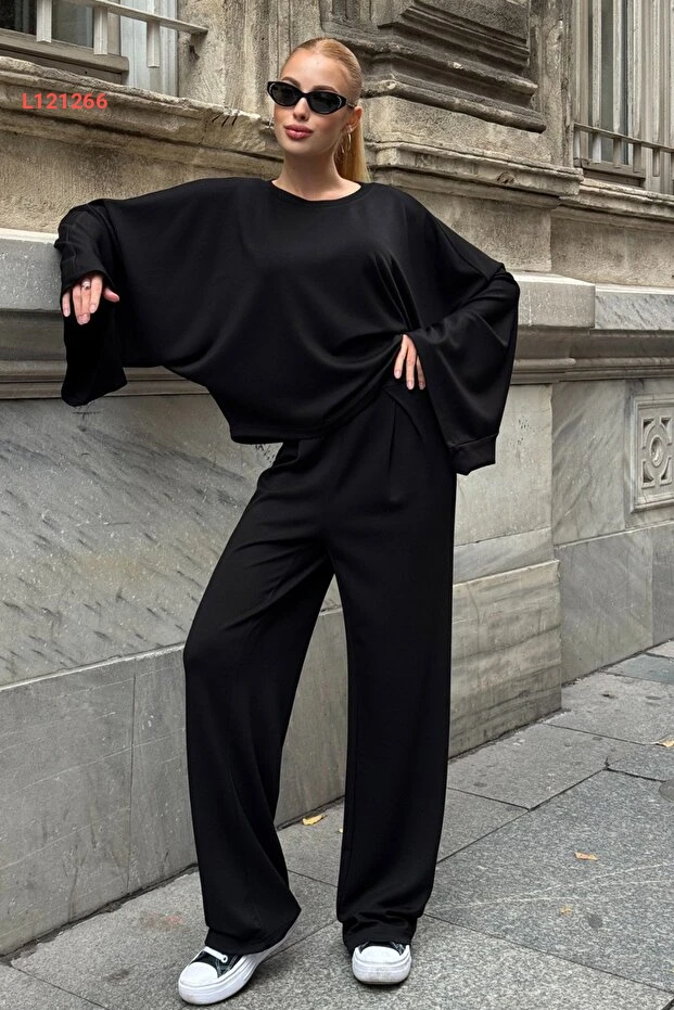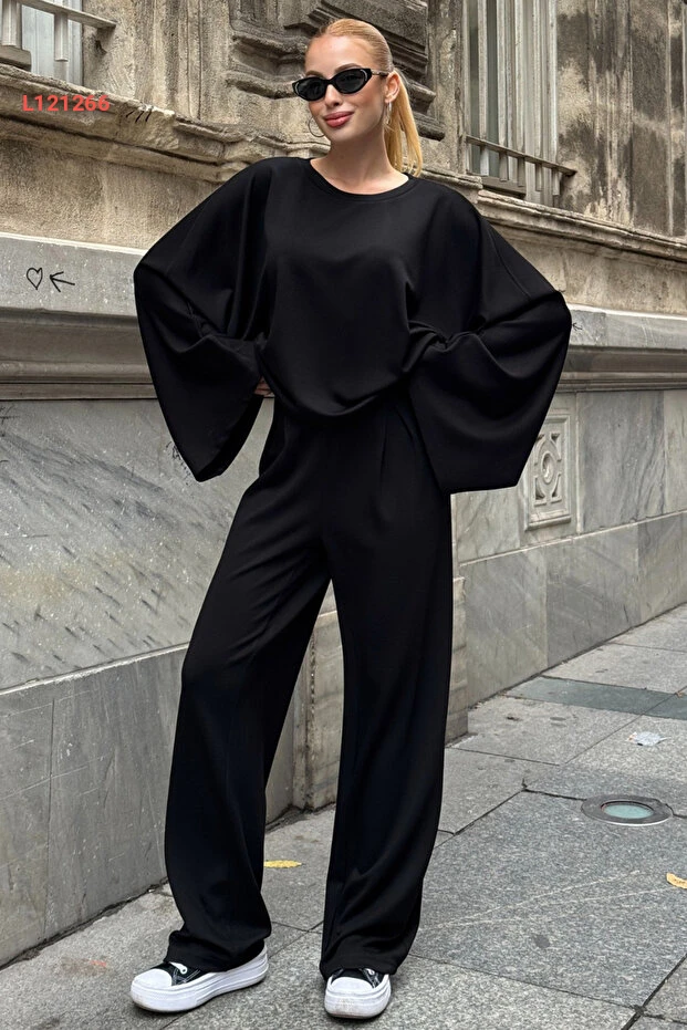 طقم أولاكاتي النسائي الأسود بأكمام واسعة تصميم عصري