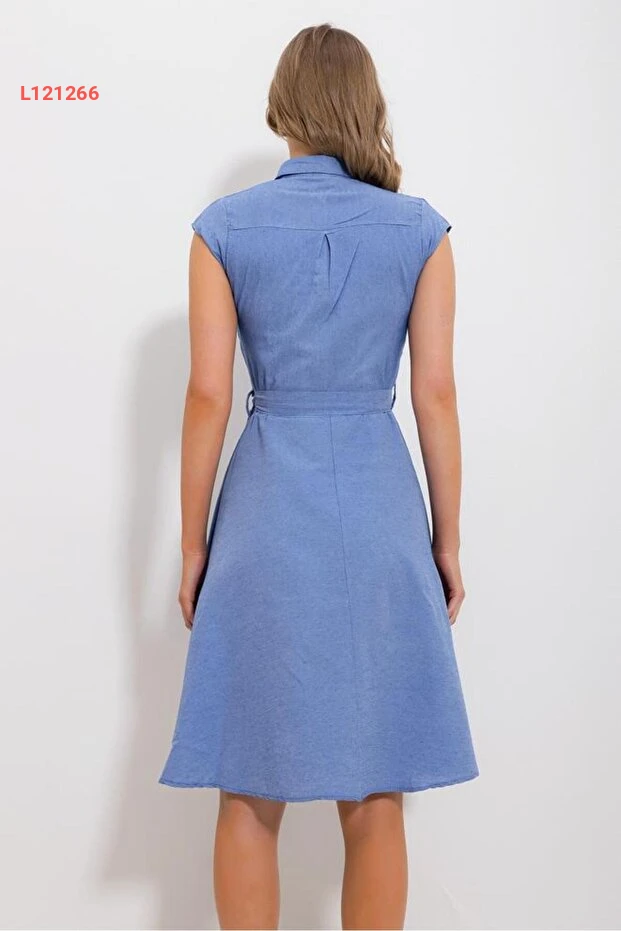 فستان ألين الأزرق بدون أكمام بتصميم Alaçatı الأنيق