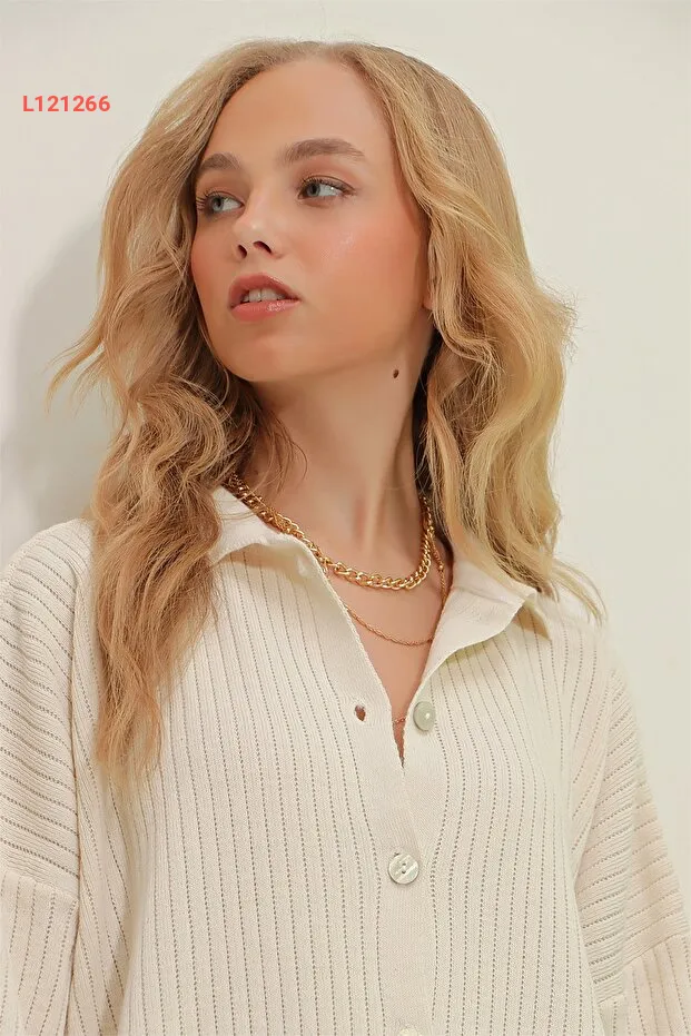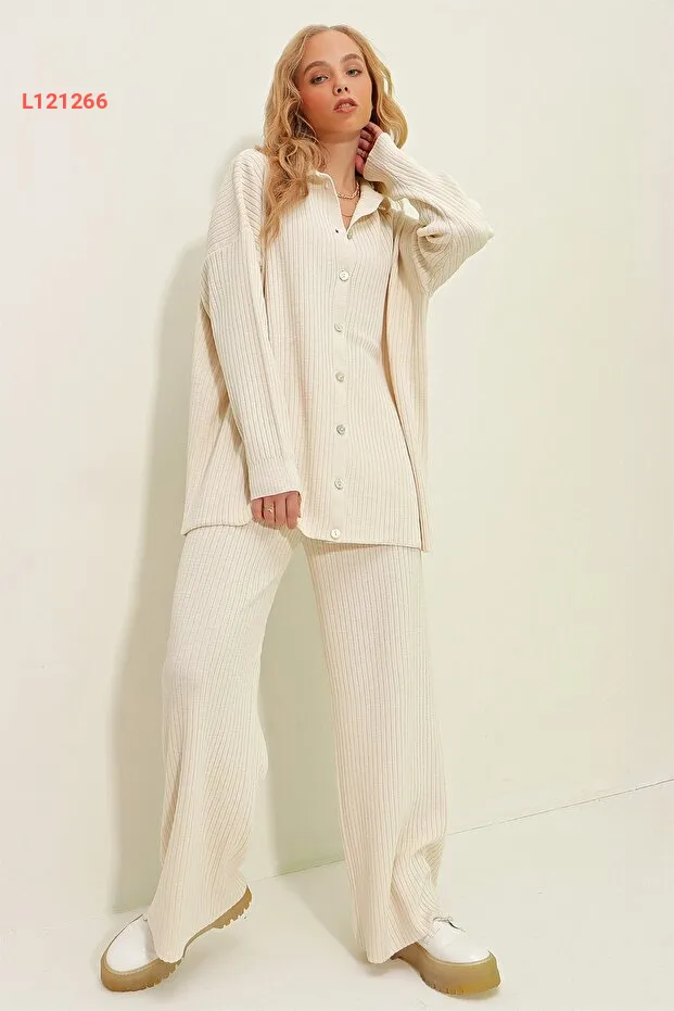 استمتعي أناقتك مع طقم الكشمير العصري بتصميم Alaçatı، الذي يجمع بين الراحة والتفاصيل الراقية. يتميز هذا الطقم بلون الكريمي الناعم وأزراره الأنيقة، مما يجعله خيارًا مثاليًا لجميع المناسبات. احصلي على إطلالة رائعة تجمع بين الأنسابية والأناقة مع هذا الطقم الفريد!