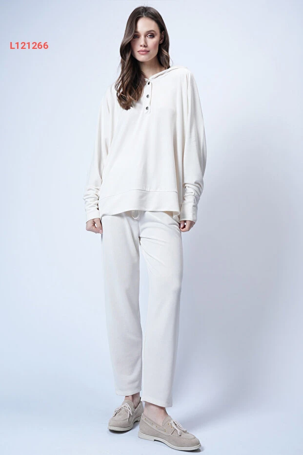 اكتشفي أناقتك مع طقم "Trend Alaçatı Stili" الذي يتضمن سترة هودي فضفاضة مع أزرار و سروال متناسق، مصمم من قماش ناعم ومريح يمنحك شعورًا بالرقي والراحة في كل الأوقات. تميز بإطلالة عصرية وجذابة، حيث يضفي اللون العاجي لمسة من الأناقة على خزانة ملابسك، مما يجعله الخيار المثالي لكل المناسبات.