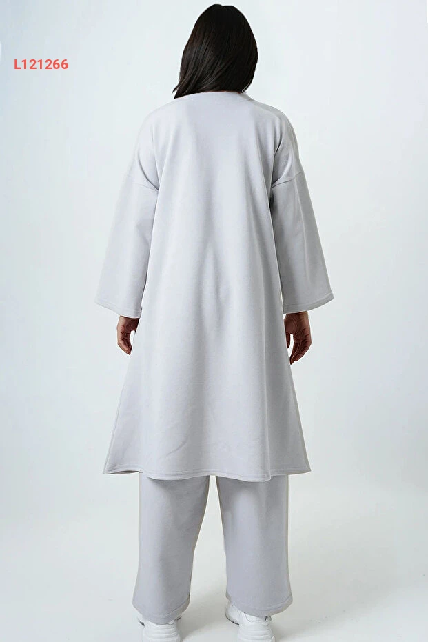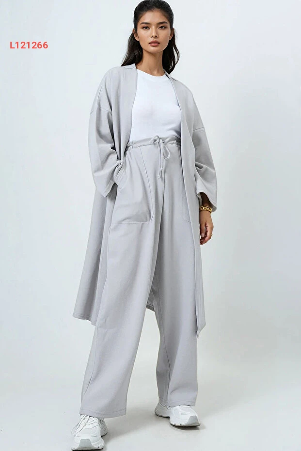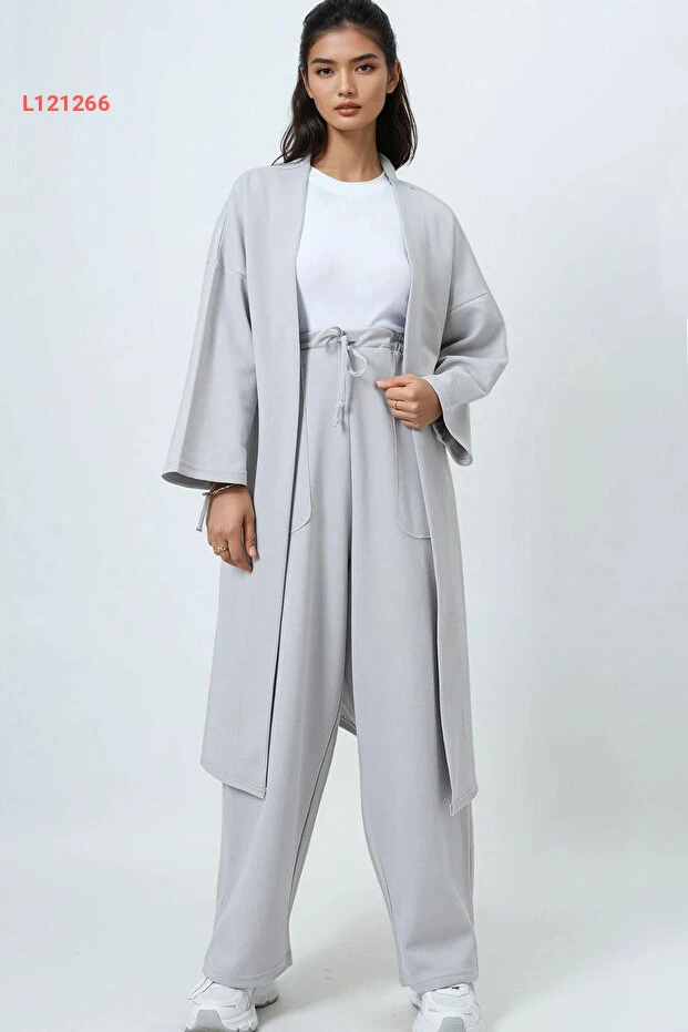 استمتعي بأناقتكِ وراحتكِ مع طقم "Trend Alaçatı Stili"! يتكون من كيمونو طويل بلون رمادي ذو نقوش ذاتية مميزة، مع بنطال بالازو مزدوج الجيوب يوفر لكِ حلاً مثالياً لمظهرك اليومي أو المناسبات الخاصة. يجمع التصميم بين الأناقة العصرية والراحة المطلقة، مما يجعله خيارًا مثاليًا لكل سيدة تهتم بتفاصيل الموضة.