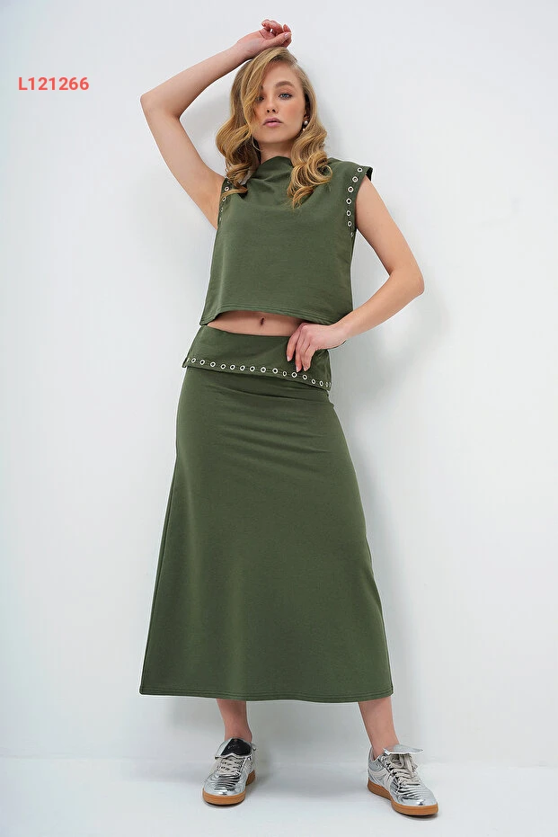 استمتعي بأناقة لا مثيل لها مع مجموعة بلوزة وتنورة بتصميم Alaçatı العصري. تتميز البلوزة بياقة مرتفعة وأزرار دائرية جذابة، بينما تضفي التنورة لمسة من الرقي والراحة. هذه الإطلالة مثالية لمناسباتك الاجتماعية، حيث تجمع بين الأناقة والراحة في قطعة واحدة.