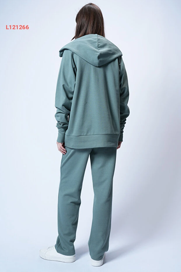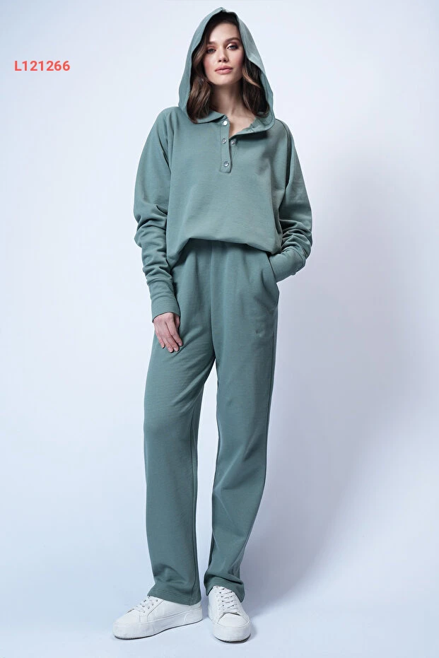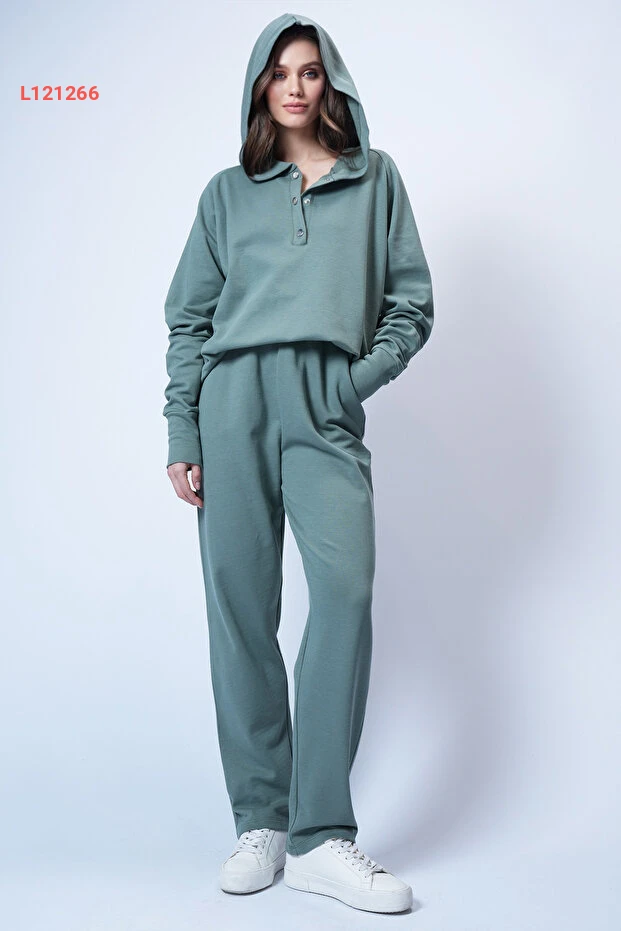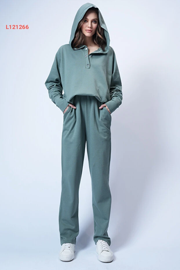 طقم كاجوال نسائي بغطاء رأس Mint بتصميم Alaçatı مع بنطلون واسع Alc-X12476