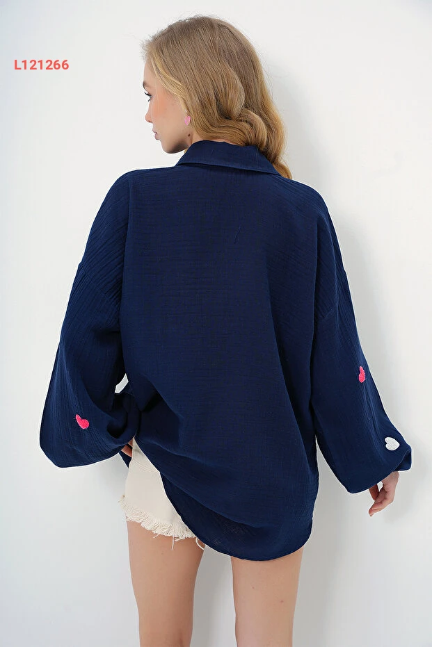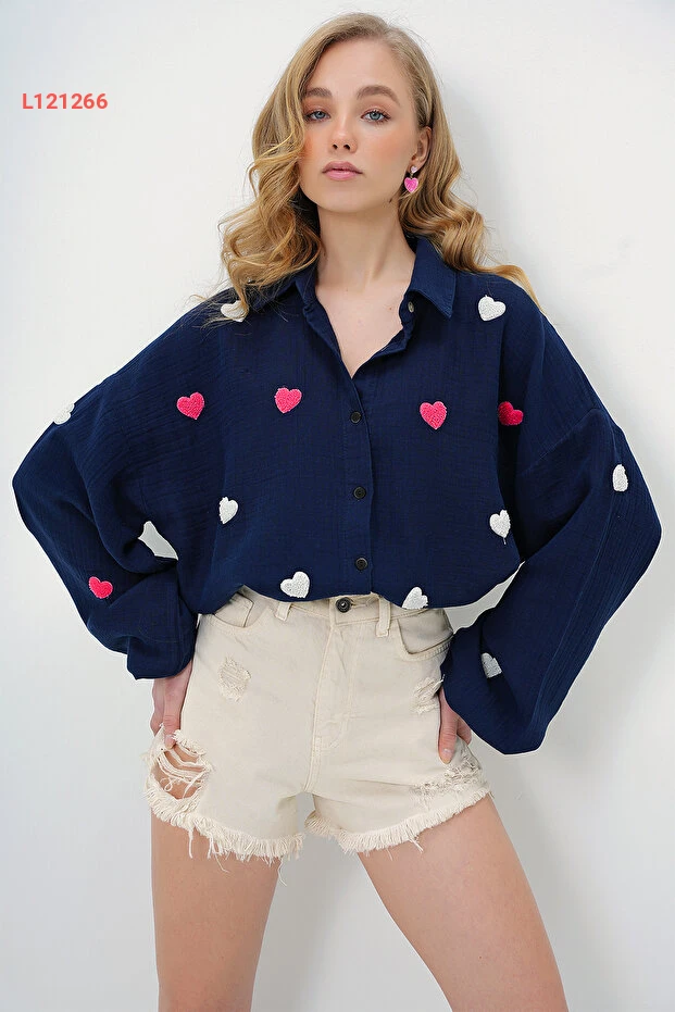 استكشف أناقتك مع قميص Alaçatı Stili النسائي بلون الكحلي الجذاب، المصمم بتفاصيل قلب مطرزة تمنحك لمسة أنثوية مميزة. مصنوع من الكتان المريح والناعم، يوفر لكِ هذا القميص oversize حرية الحركة ويضفي لمسة عصرية على إطلالتك اليومية. ارتدي هذا التصميم الفريد لتتألقي في كل مناسبة!