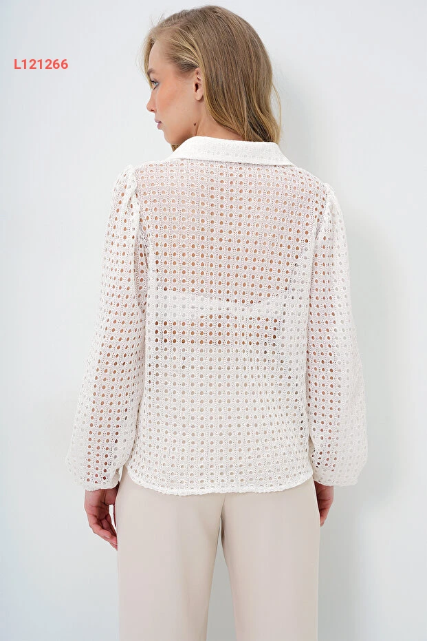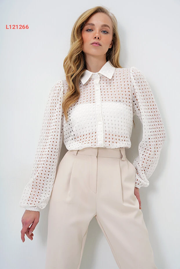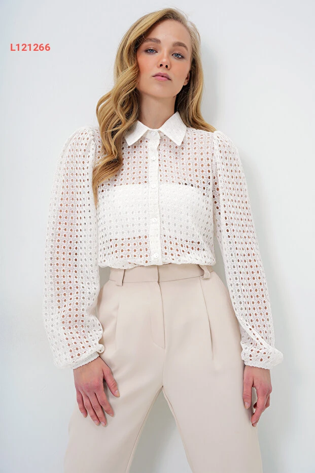قميص نسائي أبيض مع دانتيل بتصميم Alaçatı العصري - Alc-X4366