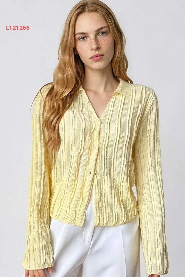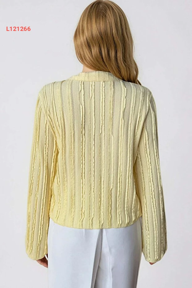 استمتع بأناقة لا مثيل لها مع قميص Trend Alaçatı Stili بلون الأصفر الزاهي! يتميز بتصميم V يميز إطلالتك مع أكمام إسبانية أنيقة وتفاصيل فرفر تضفي لمسة من الأنوثة. مصمم من قماش ناعم ومرن، هذا القميص يوفر لك الراحة ويضفي لمسة عصرية على أي مجموعة ملابس.