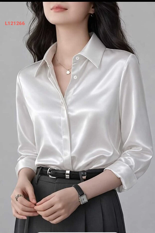 قميص ساتان رسمي بتصميم عصري - أبيض
