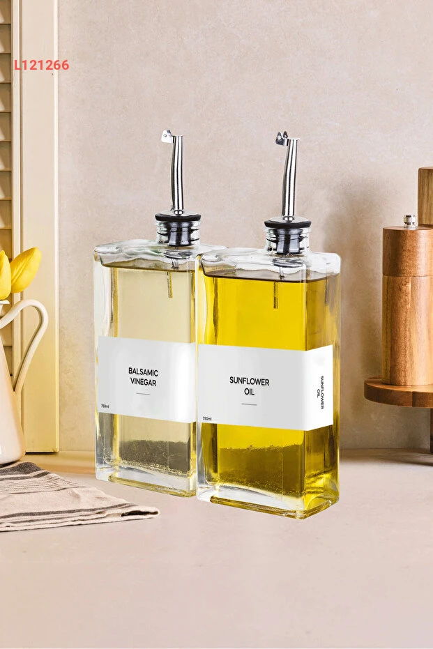 مجموعة زجاجات زيت وخل مقاومة للتسرب بسعة 750 مل - 2 قطعة مع غطاء من الفولاذ المقاوم للصدأ