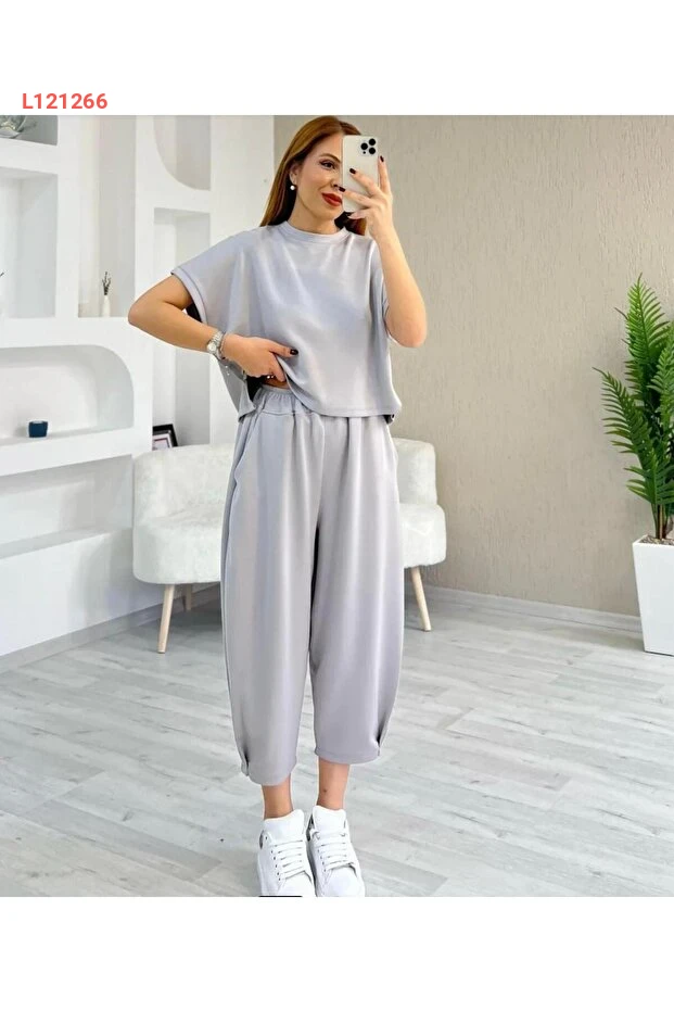 اكتشف الأناقة والراحة مع طقم الشالوار القصير ذو القماش المدل. يتميز بتصميم عصري يوفر لك حرية الحركة، بينما يضيف لمسة من الأناقة إلى إطلالتك اليومية. احصلي على مظهر مميز يجمع بين الراحة والأسلوب في قطعة واحدة!