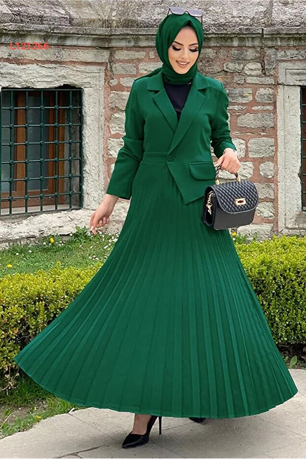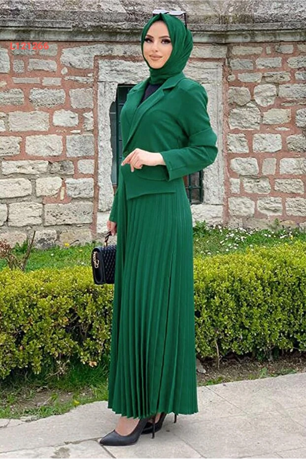 فستان بتصميم جاكيت نسائي اللون الأخضر الزمردي T 0073