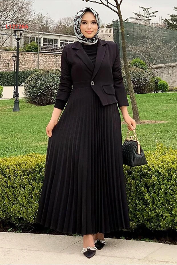 استمتعي بأناقة لا تضاهى مع فستان "TRENDTESETTÜR" ذو تصميم الجاكيت الأسود. يجمع هذا الفستان بين العصرية والراحة، مما يجعلها مثالية لكل المناسبات، سواء كانت رسمية أو غير رسمية. مصنوع بخامات عالية الجودة، يمنحكِ إطلالة ساحرة وإحساس بالثقة طوال اليوم.