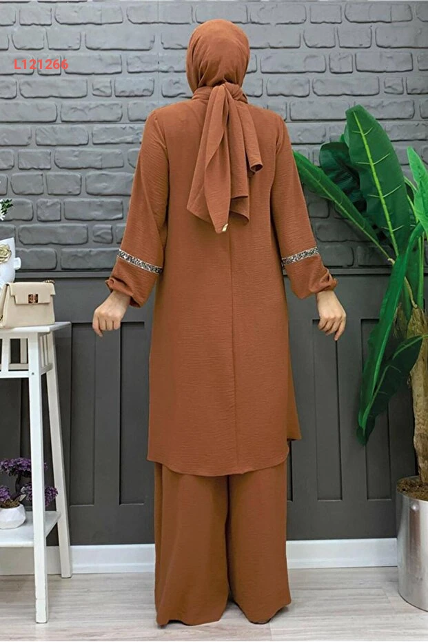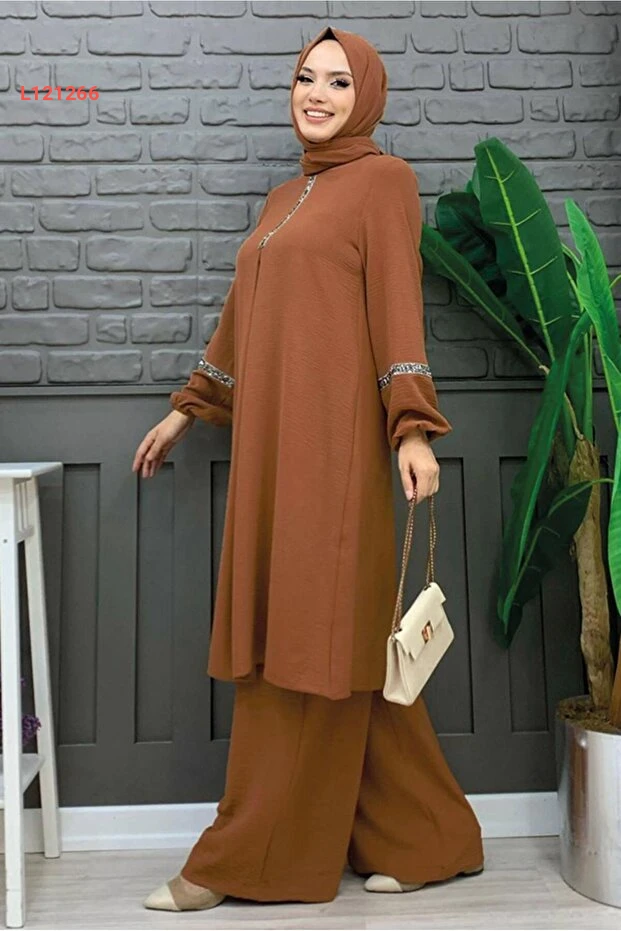 استمتعي بأناقة لا مثيل لها مع طقم TRENDTESETTÜR النسائي، الذي يأتي بتصميم عصري رائع باللون الكاكي مع تفاصيل الحجر الأنيقة. يجمع هذا الطقم بين الراحة والذوق الرفيع، مما يجعله خياراً مثالياً للمناسبات اليومية أو الخاصة، ليمنحك إطلالة متميزة تشد الأنظار.