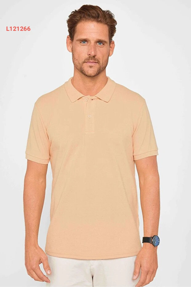 Tudors Erkek Slim Fit Dar Kesim Pamuklu Yumuşak Doku Nefes Alan Kumaş Kıvrılmaz Yaka Bej Polo Yaka Tişört
