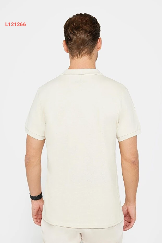 Tudors Erkek Slim Fit Dar Kesim Pamuklu Yumuşak Doku Nefes Alan Kumaş Kıvrılmaz Yaka Ekru Polo Yaka Tişört