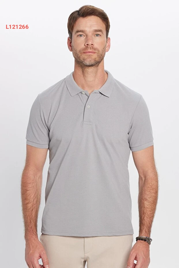 Tudors Erkek Slim Fit Dar Kesim Pamuklu Yumuşak Dokulu Serin Tutan Kumaş Düz Pike Gri Polo Yaka Tişört