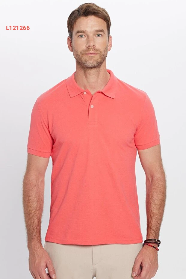 Tudors Erkek Slim Fit Dar Kesim Pamuklu Yumuşak Dokulu Serin Tutan Kumaş Düz Pike Nar Polo Yaka Tişört