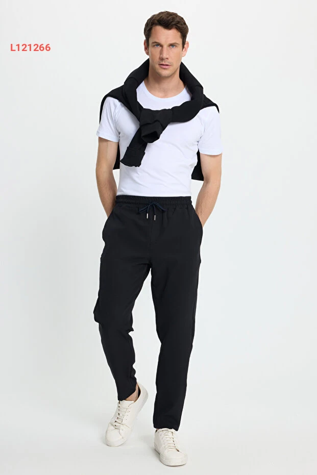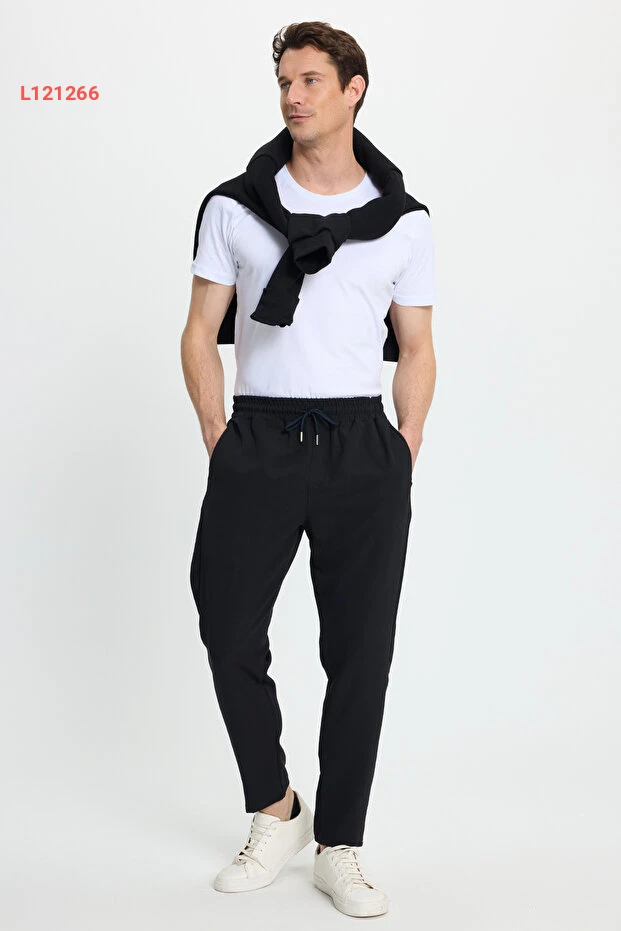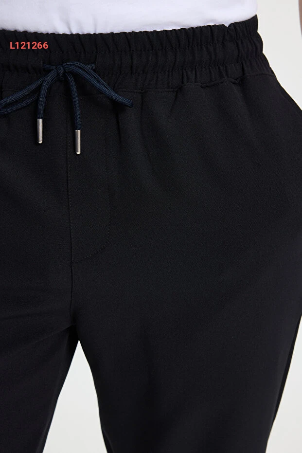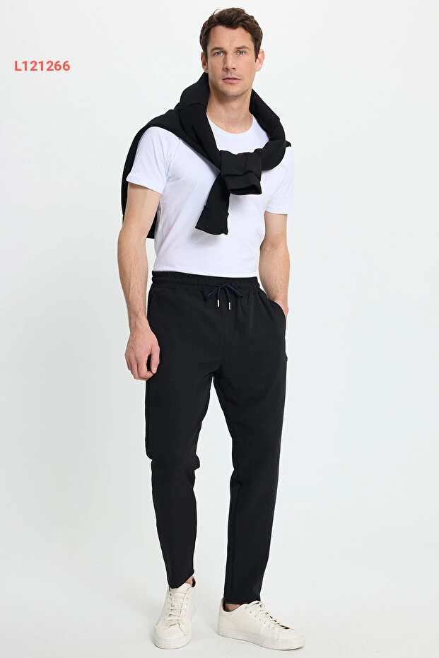 بنطلون جوجر رجالي أسود برباط خصر ومقصوص مريح من تيودور