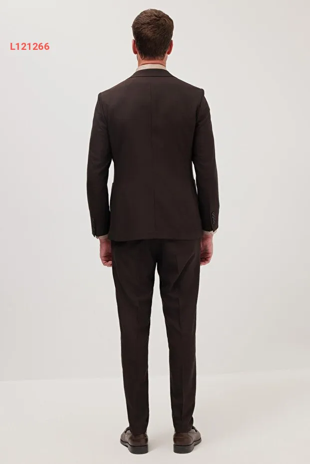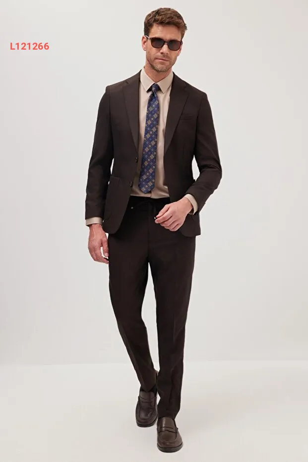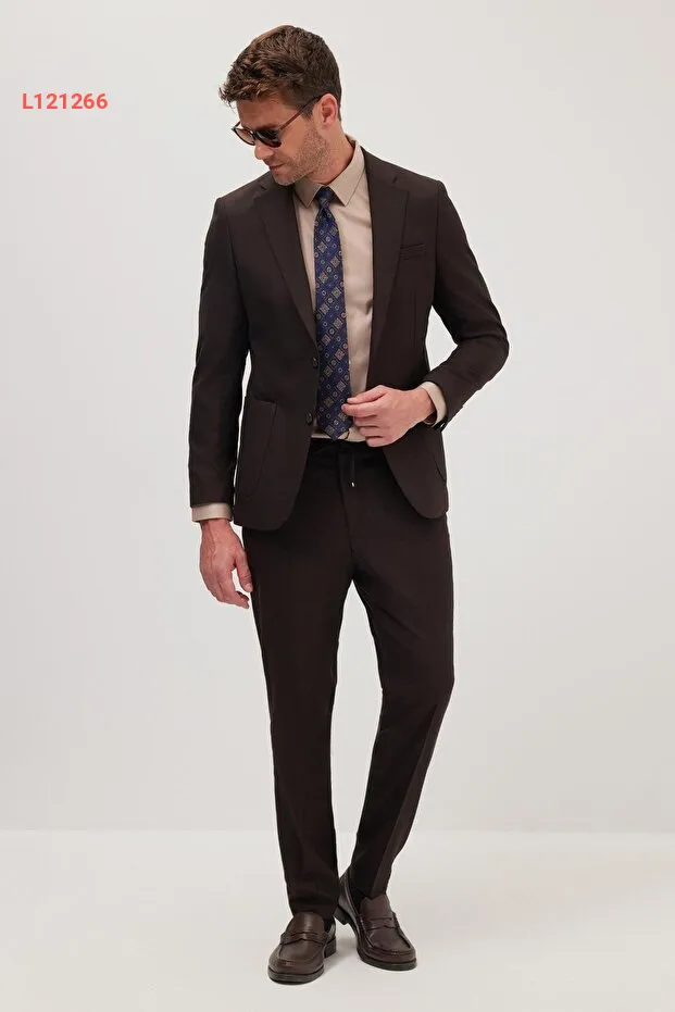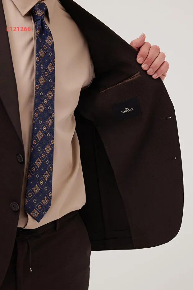 استمتع بالأناقة العصرية مع بدلة Tudors الرجالية بتصميم Slim Fit ذات الألوان البنية الجذابة. مصنوعة من قماش مرن ومريح، توفر لك الحركية المثالية مع الحفاظ على مظهر أنيق في كل المناسبات. تعزز تفاصيل الياقة الأحادية لمسة من التميز، مما يجعلها خيارك المثالي للظهور بصورة أنيقة وجذابة.