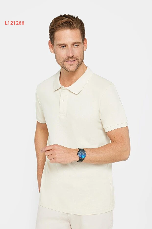 تيشيرت بولو رجالي بأكمام ضيقة من قطن ناعم وقابل للتنفس بلون أبيض من تودورز