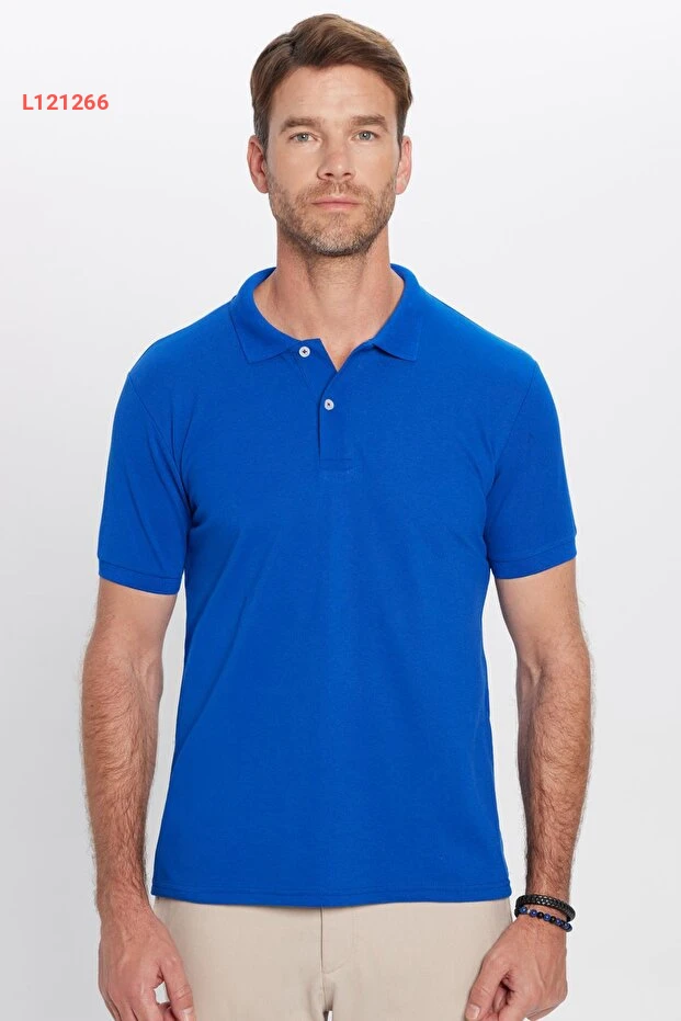 تيشيرت بولو أزرق ملكي قطني مريح بقصة ضيقة من تيودورز