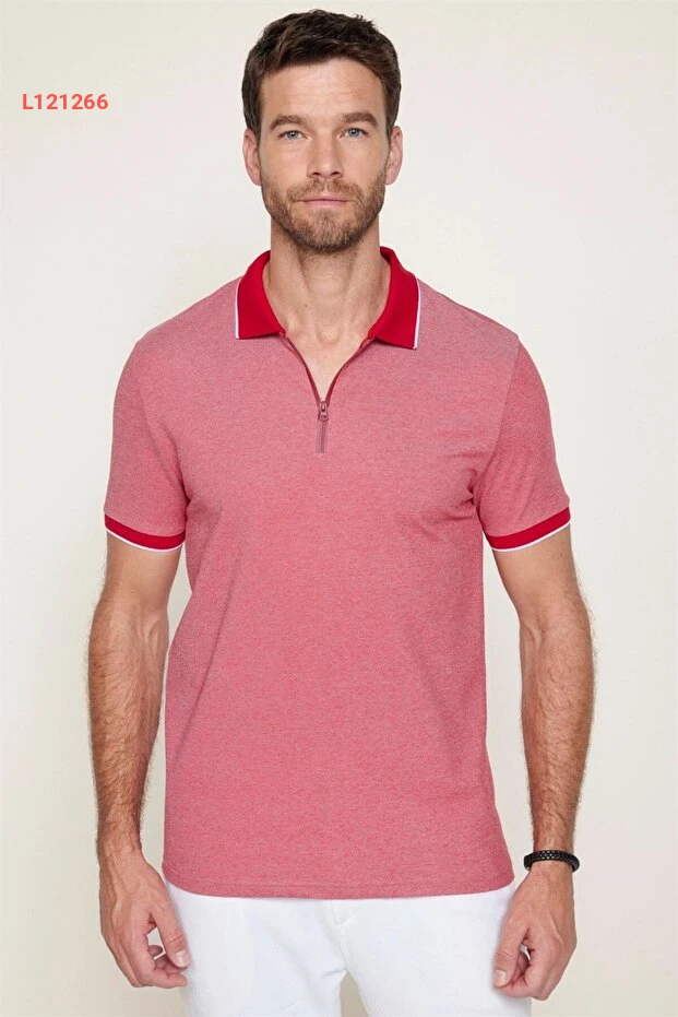 تي شيرت بولو رجالي ضيق بقصة عصرية من تويدورز - كتان بوردو بفرد زوّار