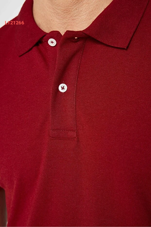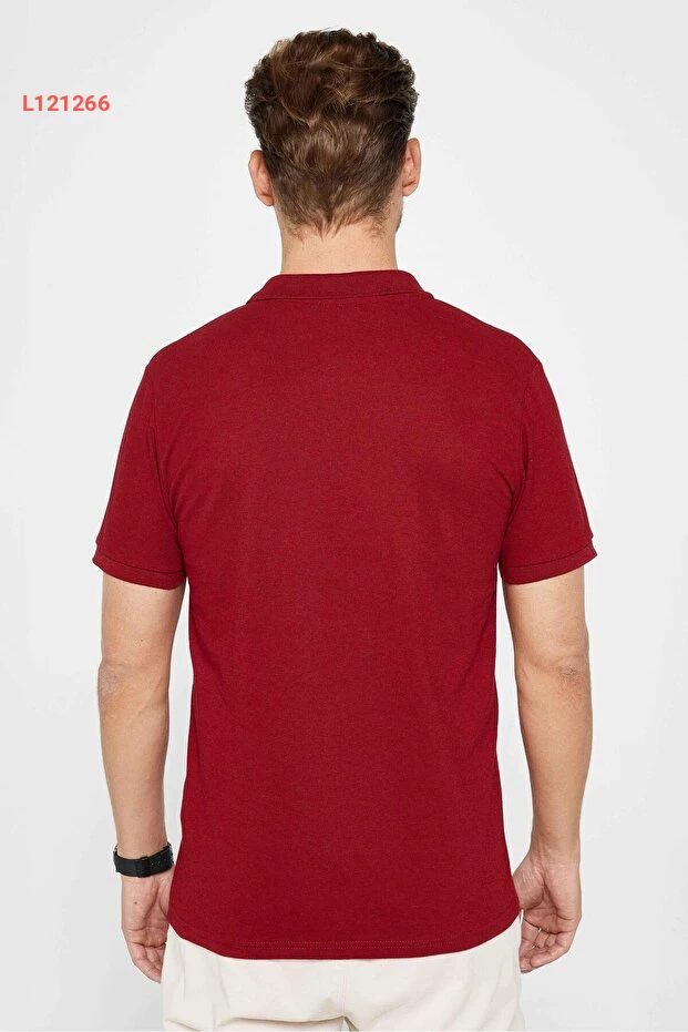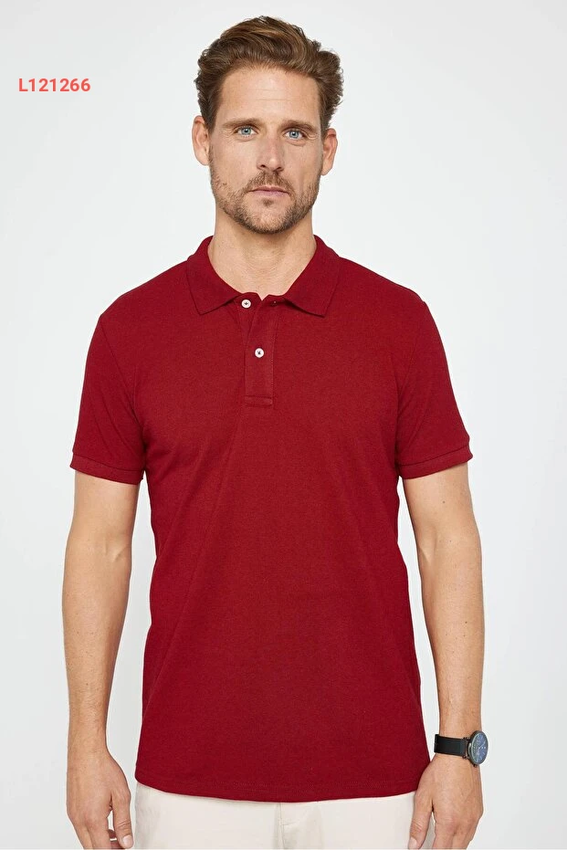 تيشيرت بولو رجالي قميص ضيق من قطن ناعم ذو نسيج مريح - لون بورجندي
