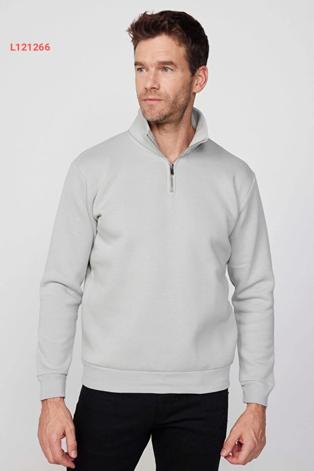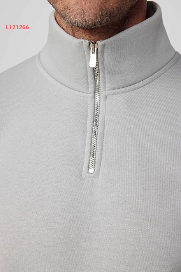 سويت شيرت تويدورز نصف سحاب رياضي مريح بألوان حجرية برقبة عالية من القطن المدعوم بالفترة
