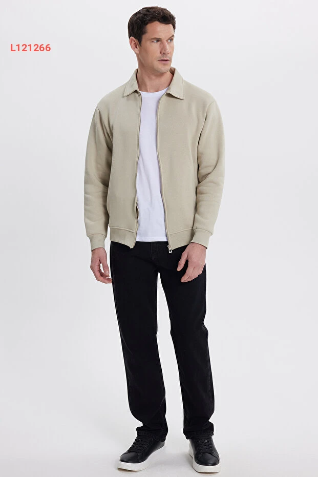 سترة رجالية بسحاب بياقة قميص مع جيب