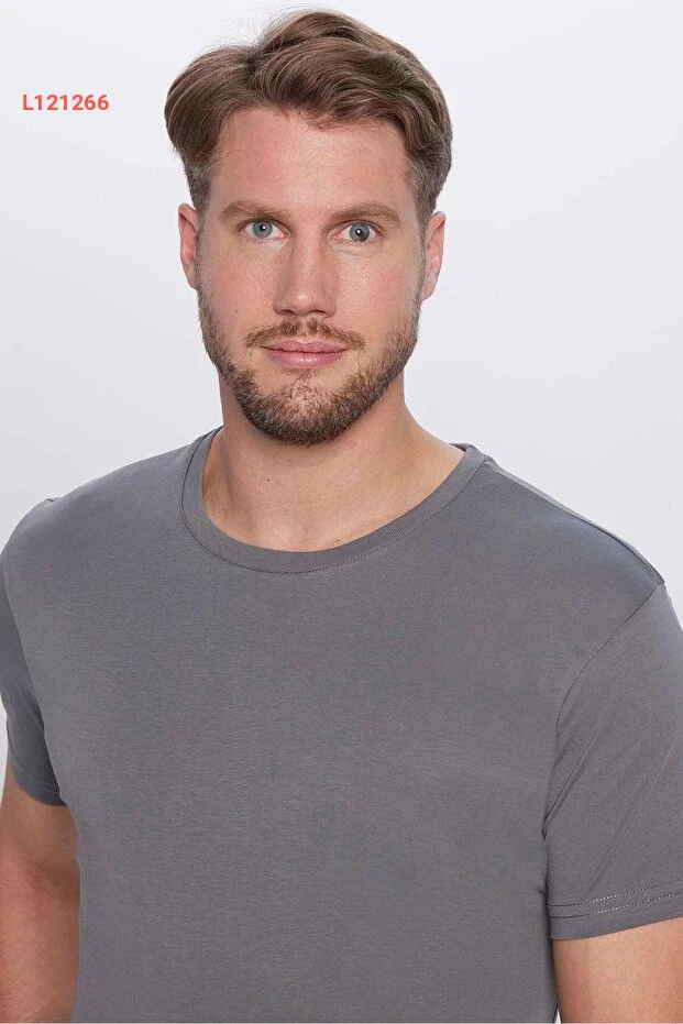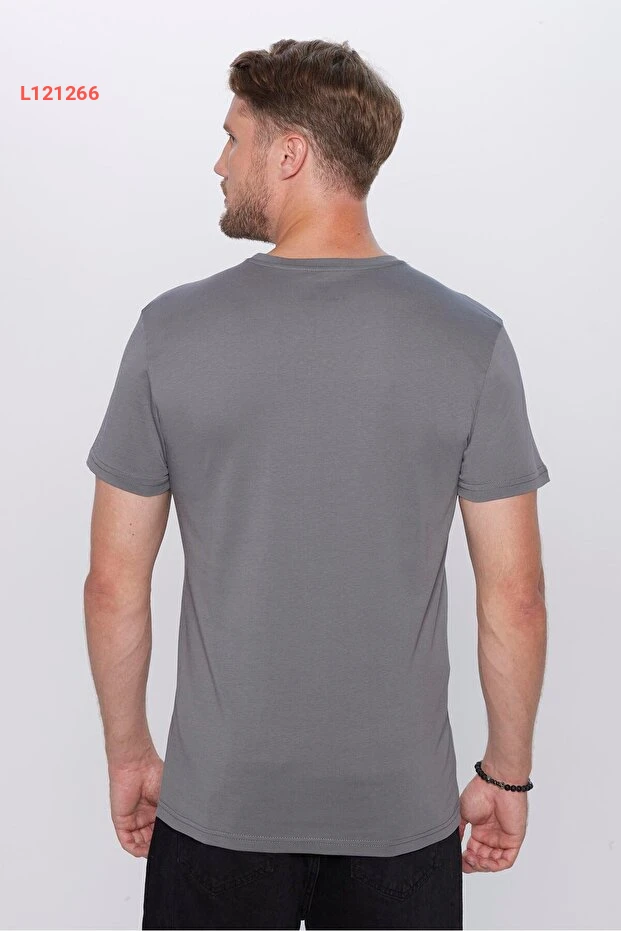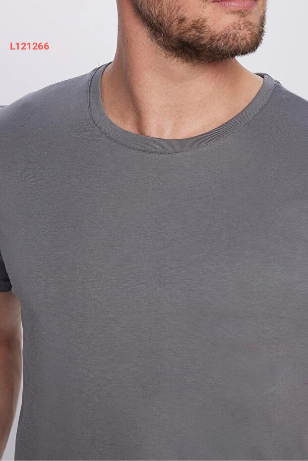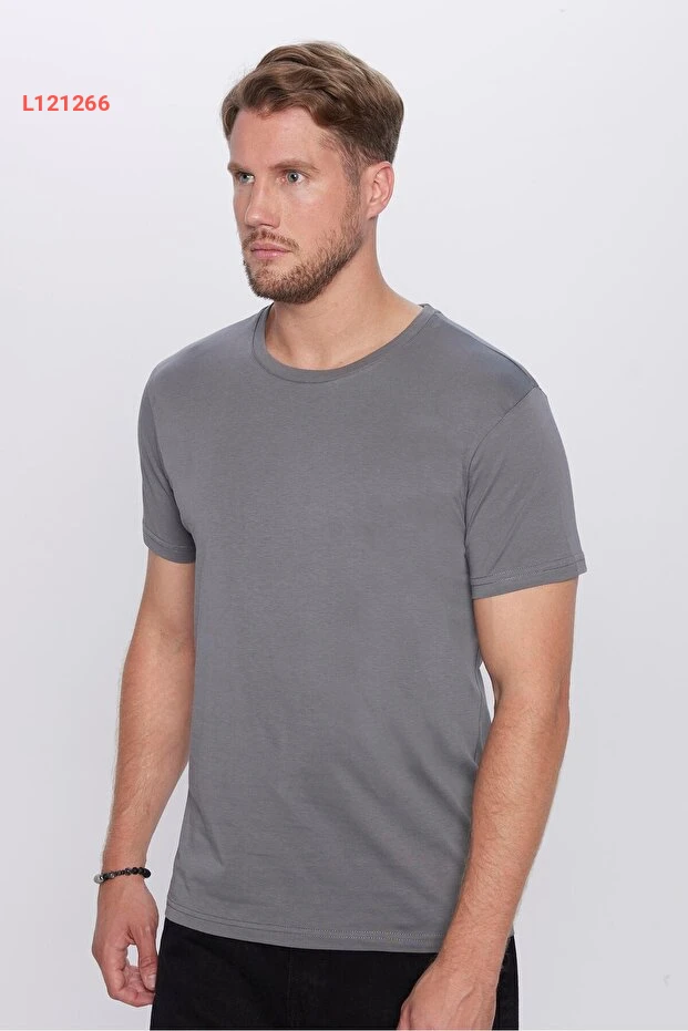 Tudors Unisex Slim Fit Dar Kesim %100 Pamuk Yumuşak Dokulu Gri Bisiklet Yaka Tişört