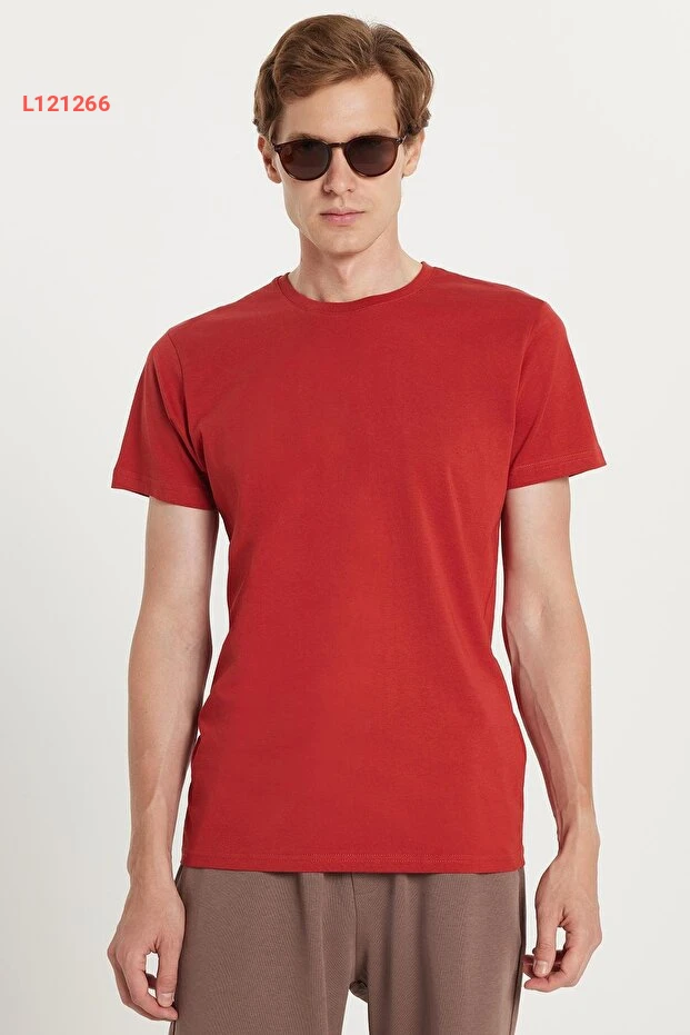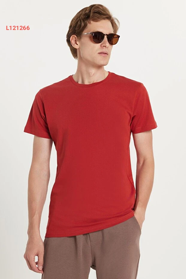Tudors Unisex Slim Fit Dar Kesim %100 Pamuk Yumuşak Dokulu Kiremit Bisiklet Yaka Tişört