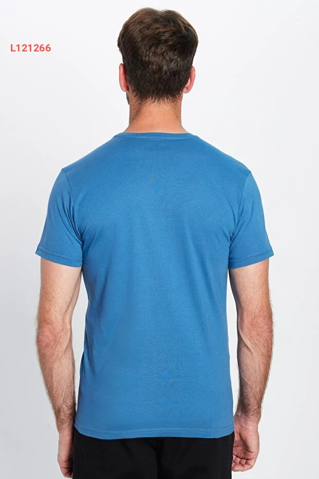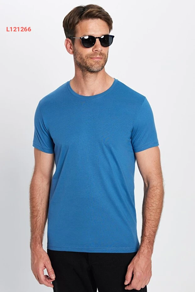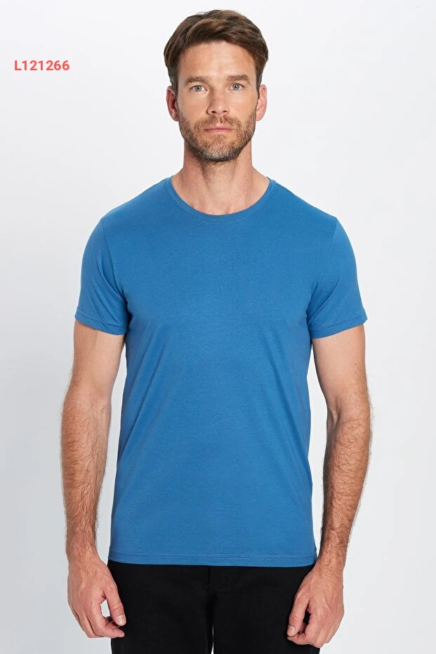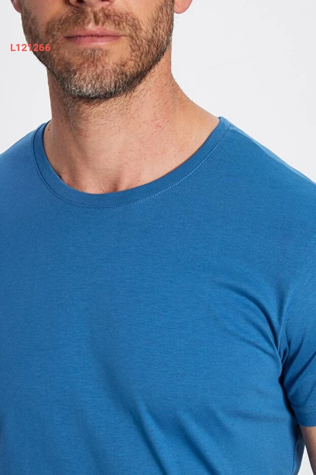Tudors Unisex Slim Fit Dar Kesim %100 Pamuk Yumuşak Dokulu Mavi Bisiklet Yaka Tişört