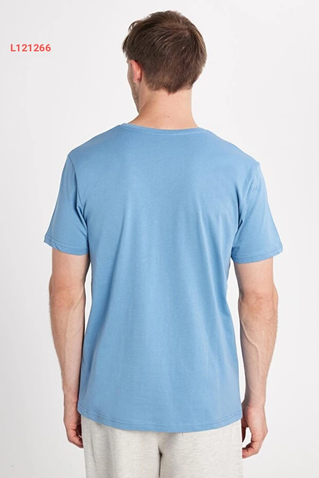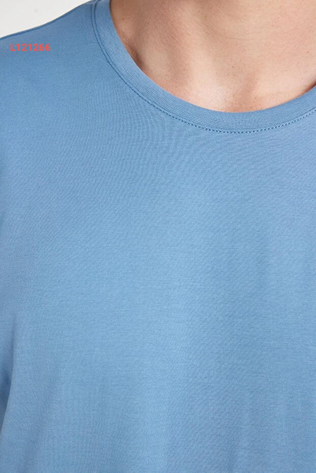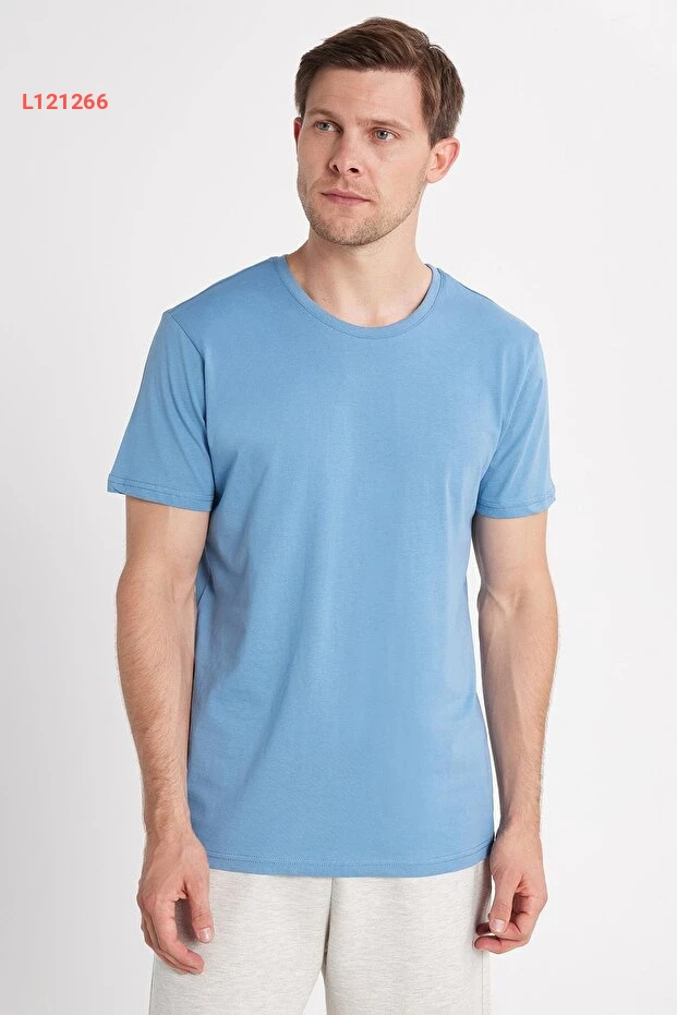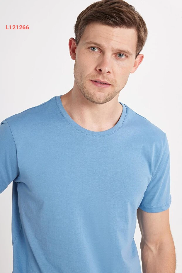 Tudors Unisex Slim Fit Dar Kesim %100 Pamuk Yumuşak Dokulu Mavi Bisiklet Yaka Tişört
