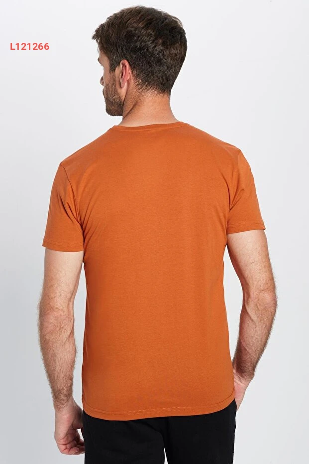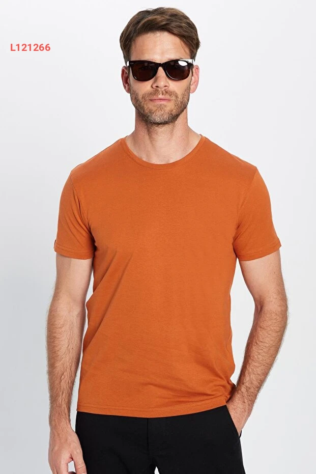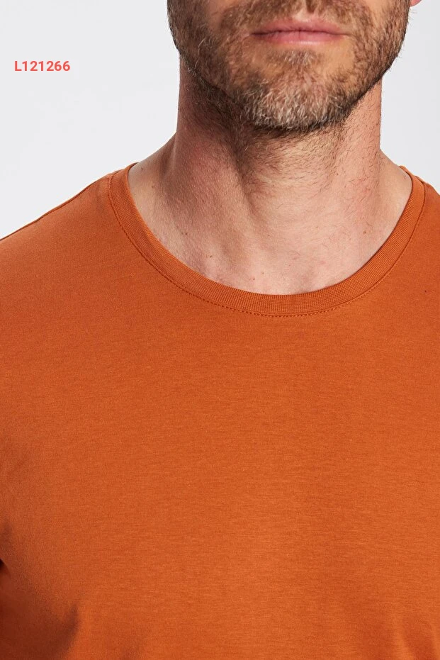 Tudors Unisex Slim Fit Dar Kesim %100 Pamuk Yumuşak Dokulu Tarçın Renk Bisiklet Yaka Tişört