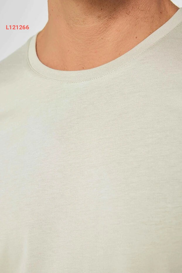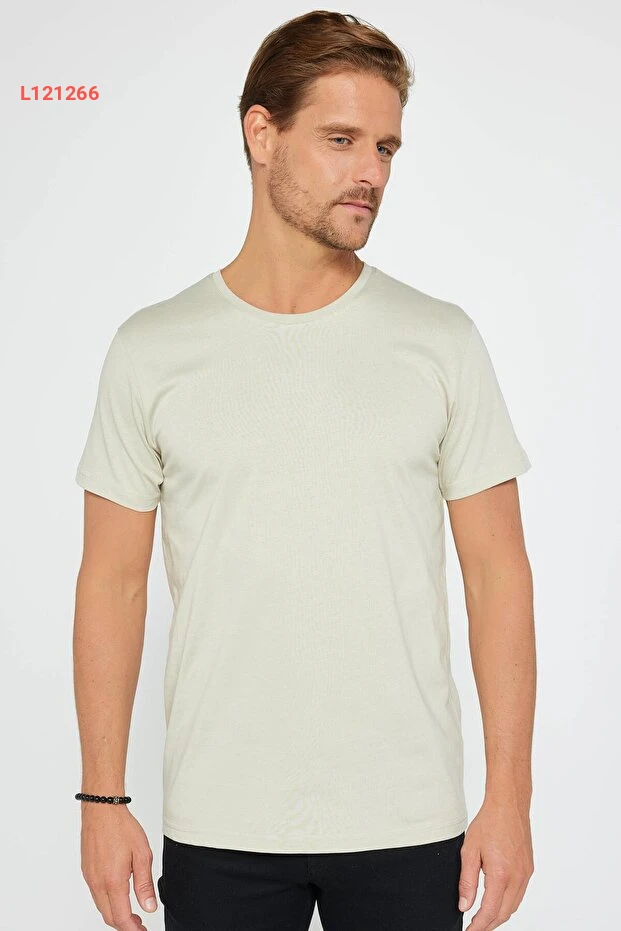 Tudors Unisex Slim Fit Dar Kesim %100 Pamuk Yumuşak Dokulu Taş Renk Bisiklet Yaka Tişört