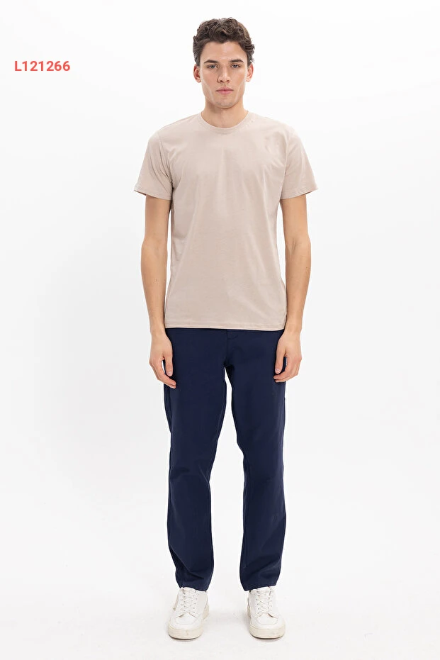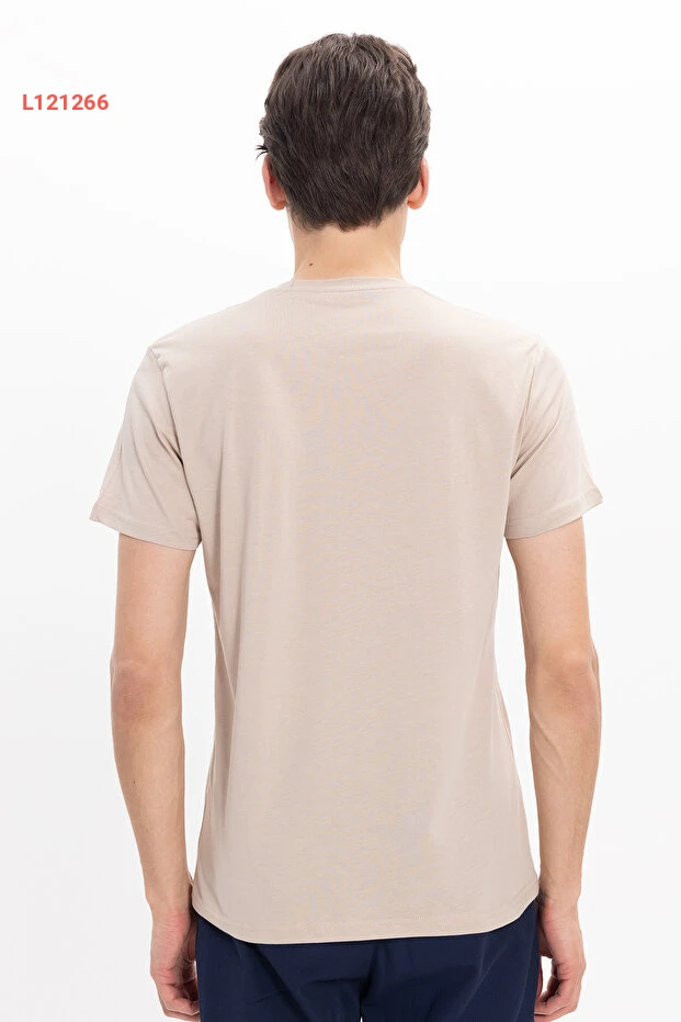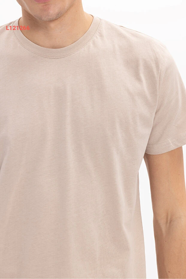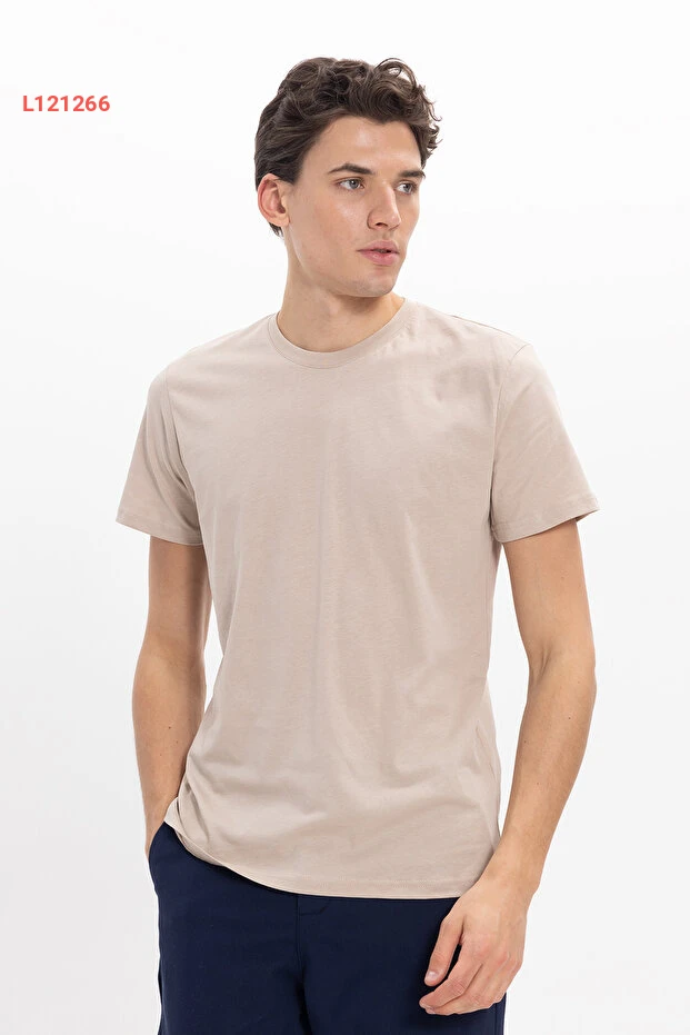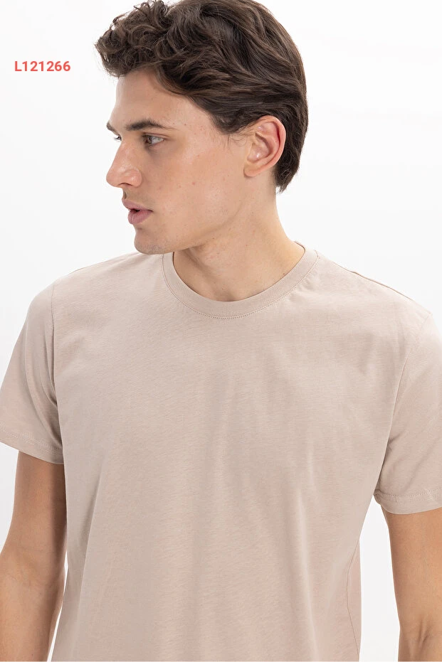 Tudors Unisex Slim Fit Dar Kesim %100 Pamuk Yumuşak Dokulu Vizon Bisiklet Yaka Tişört