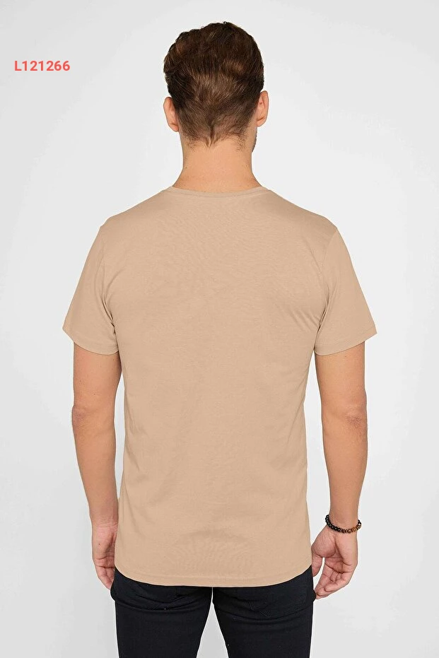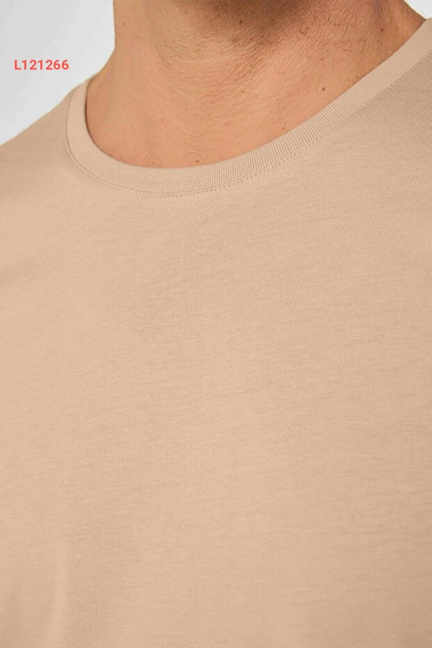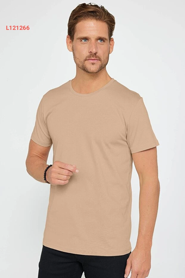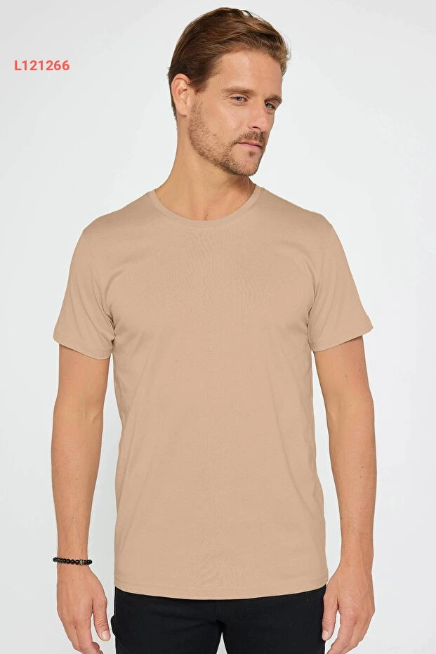 Tudors Unisex Slim Fit Dar Kesim %100 Pamuk Yumuşak Dokulu Vizon Renk Bisiklet Yaka Tişört