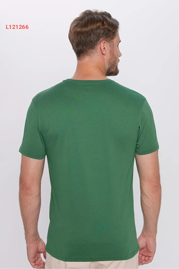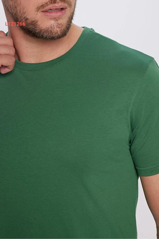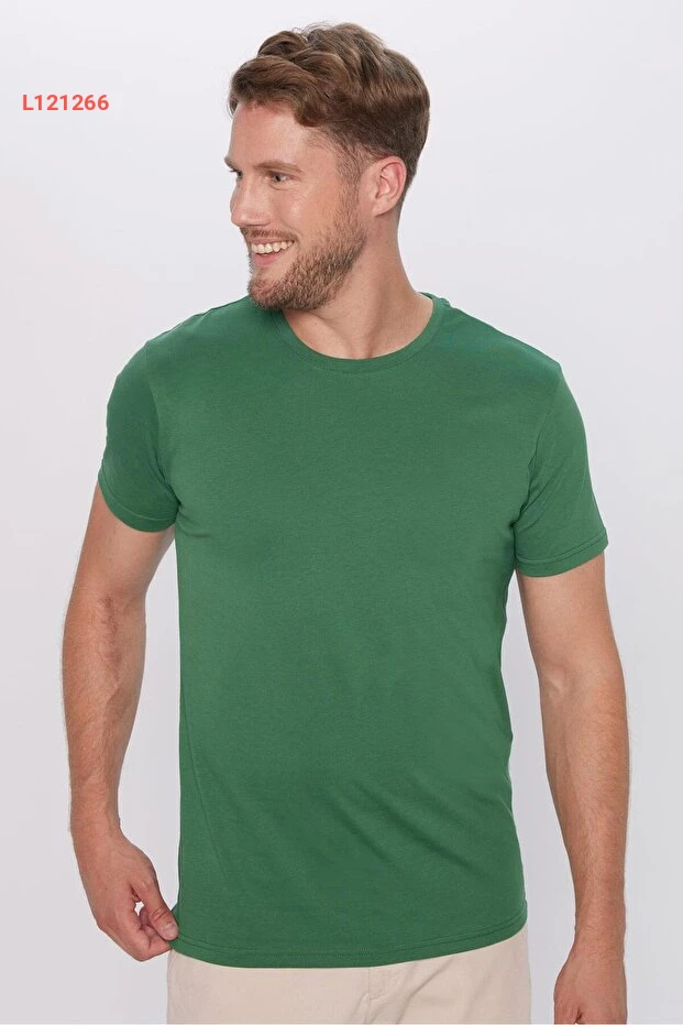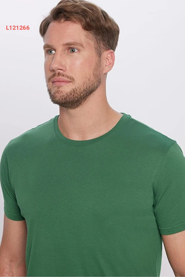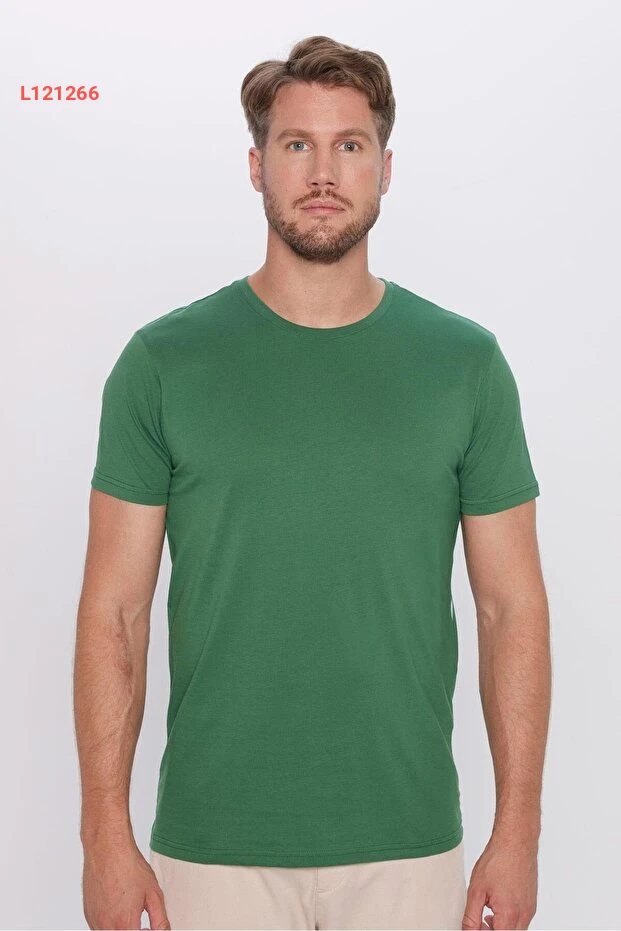 Tudors Unisex Slim Fit Dar Kesim %100 Pamuk Yumuşak Dokulu Yeşil Bisiklet Yaka Tişört