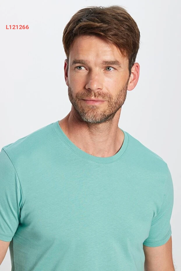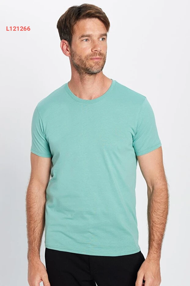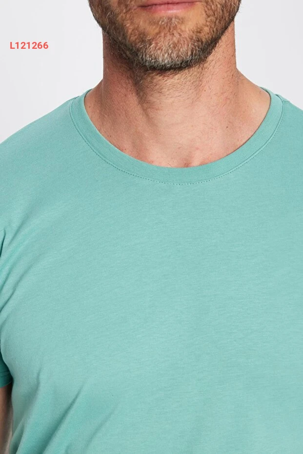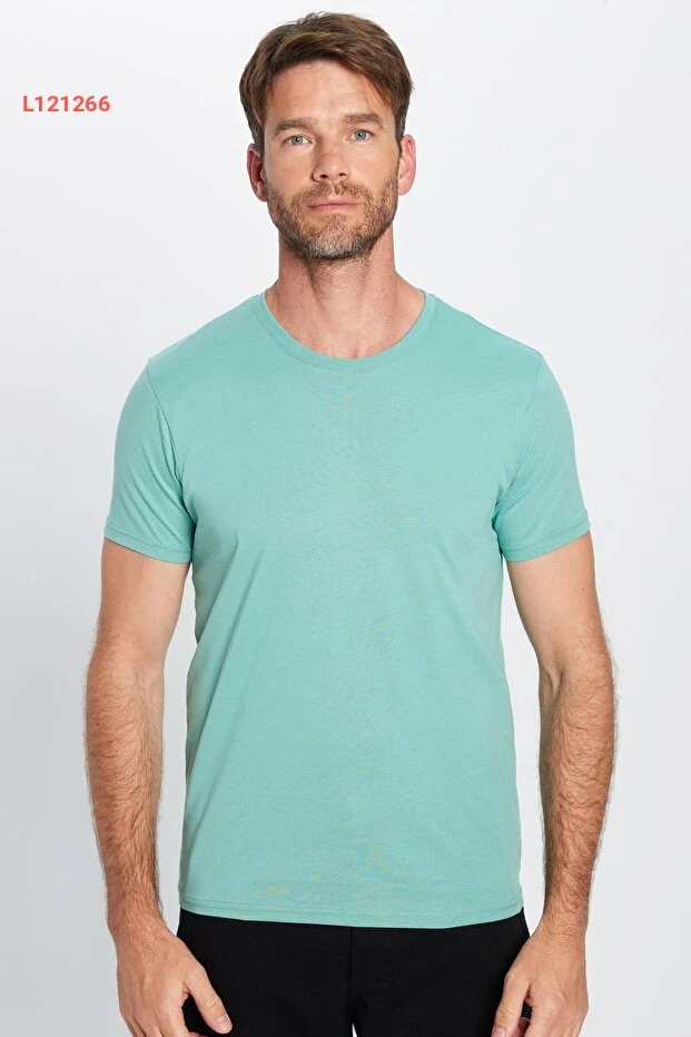 Tudors Unisex Slim Fit Dar Kesim %100 Pamuk Yumuşak Dokulu Yeşil Bisiklet Yaka Tişört