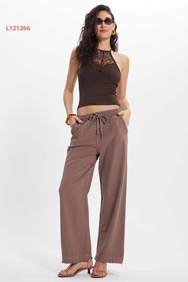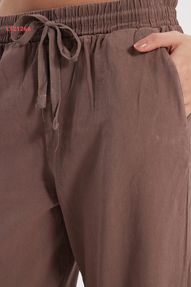 استمتعي بأناقة وراحتك مع بنطلون تودورز النسائي ذو التصميم المريح. مصنوع من القطن 100%، يتميز بخامة ناعمة ومرنة تتناسب مع شكل الجسم، مع خصر مزود بحبال وقبضات لتوفير أقصى درجات الراحة. أضفي لمسة عصرية على إطلالتك مع جيوب مزدوجة عملية ولون بني جذاب يناسب كافة المناسبات.