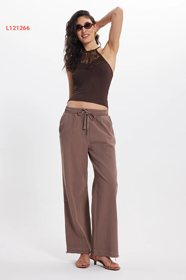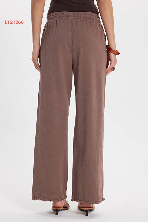 بنطال نسائي مريح من تودورز بقصة فضفاضة، 100% قطن، بحزام مزدوج وألوان بني داكن