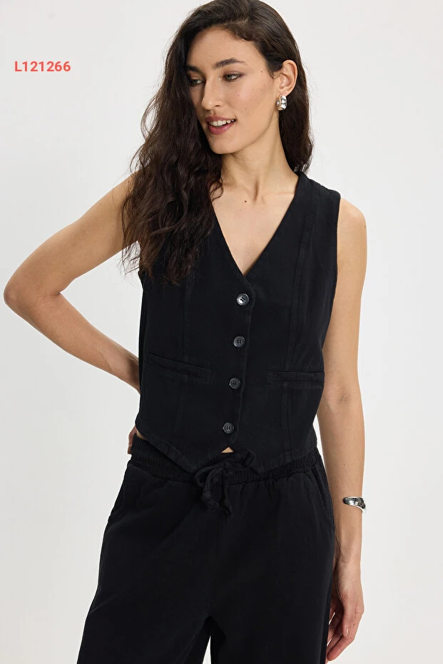 تألق أنيق: بدلة نسائية ضيقة بياقة على شكل V بأكمام مزدوجة من القطن 100% بلون أسود