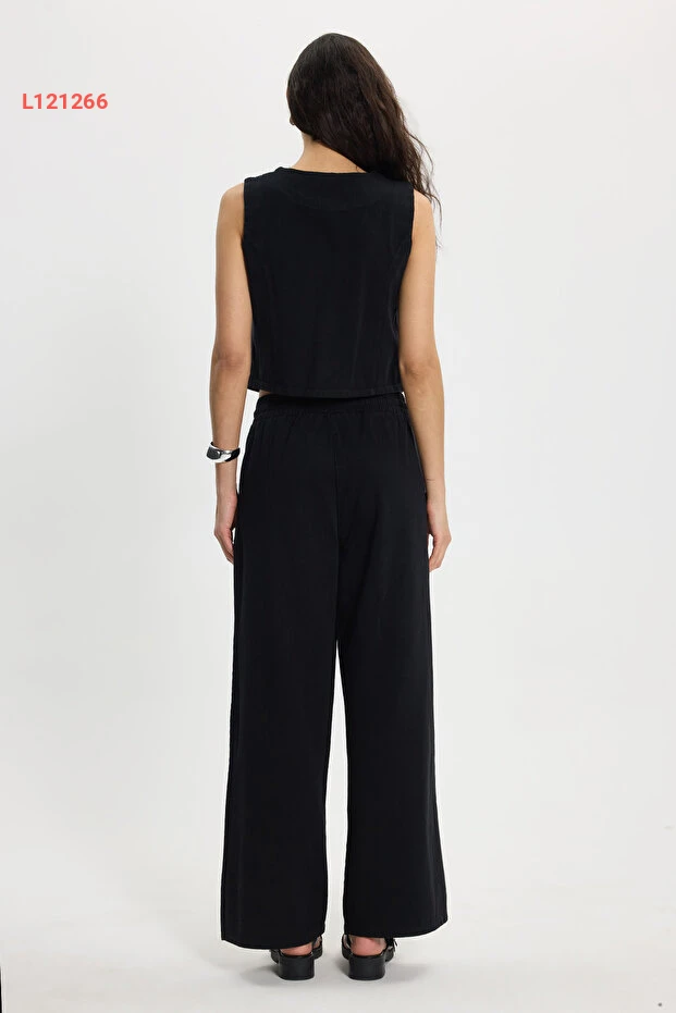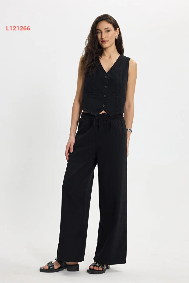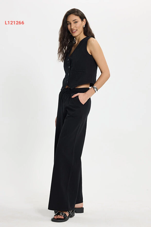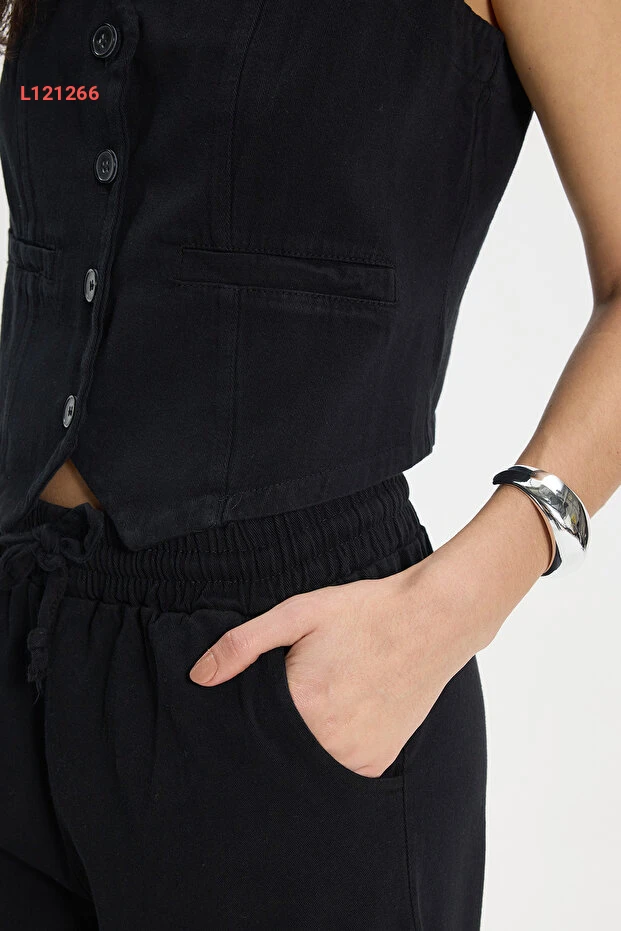 استمتع بأناقة لا تضاهى مع مجموعة Tudors النسائية، التي تضم سترة وسروال ضيق مصنوعة من 100% قطن. يأتي هذا التصميم بلون أسود أنيق وقصة نحيفة مع ياقة على شكل V، مما يمنحك مظهراً عصريًا ومريحًا، بينما تضيف الجيوب الثنائية لمسة من العملية. ارتدي هذا الزي في أي مناسبة وتألقي بثقة وجاذبية!