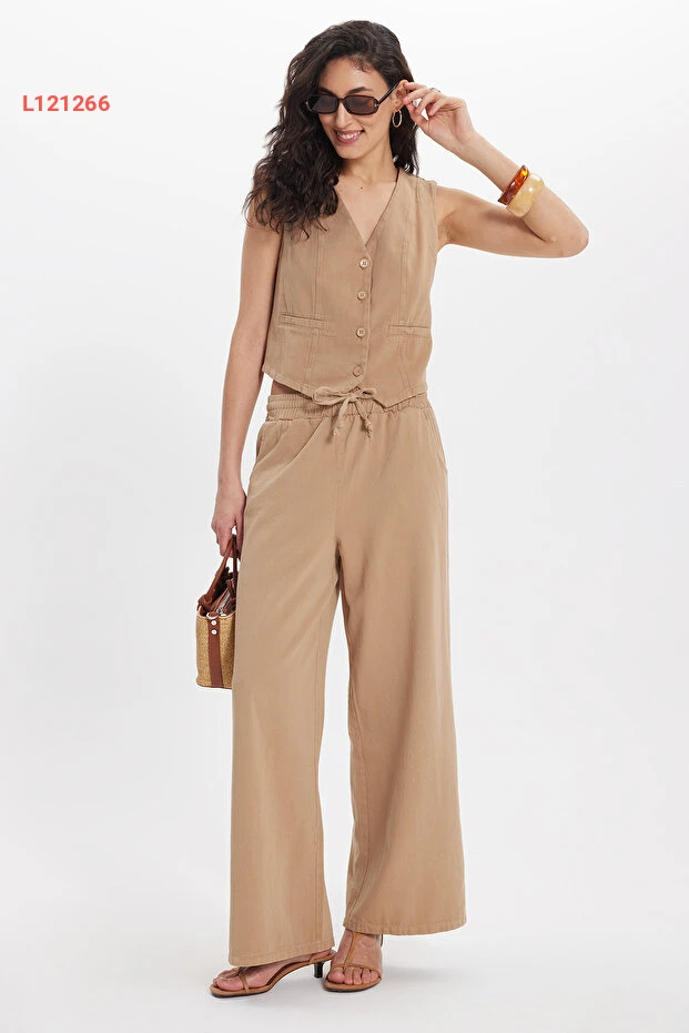 احصلي على إطلالة مميزة مع طقم Tudors النسائي، الذي يجمع بين الأناقة والراحة. يتكون من سترة بيج بتصميم slim fit مع ياقة على شكل V، وحصل على لمسة عصرية بفضل الجيوب المزدوجة. المصنوع من 100% قطن، يضمن لك الراحة طوال اليوم، ويضفي لمسة من الأناقة على أي مناسبة.