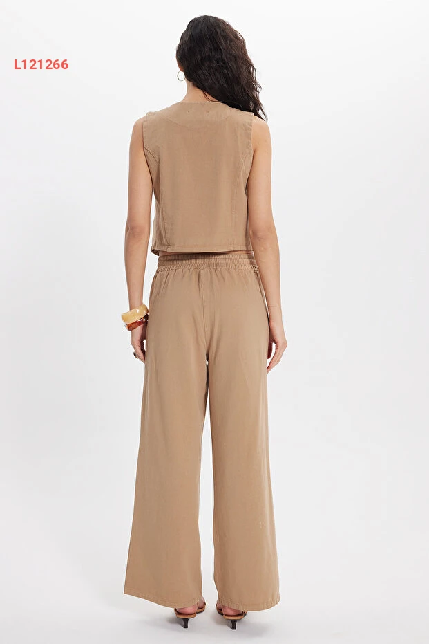 تودورز طقم بنطلون فري ج بدون أكمام للنساء بفتحة على شكل V - 100% قطن - بيج